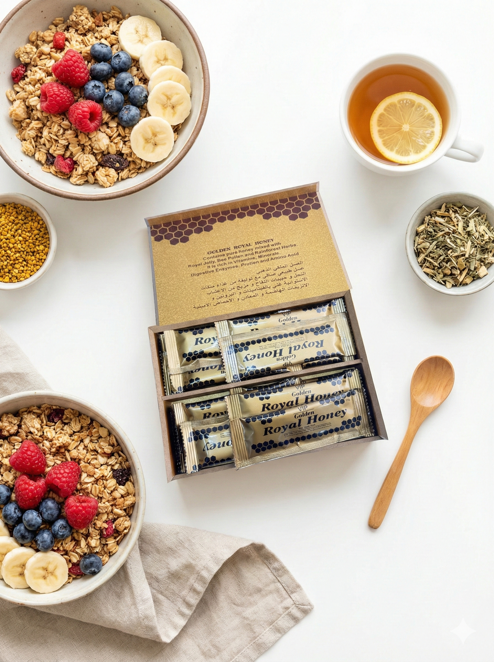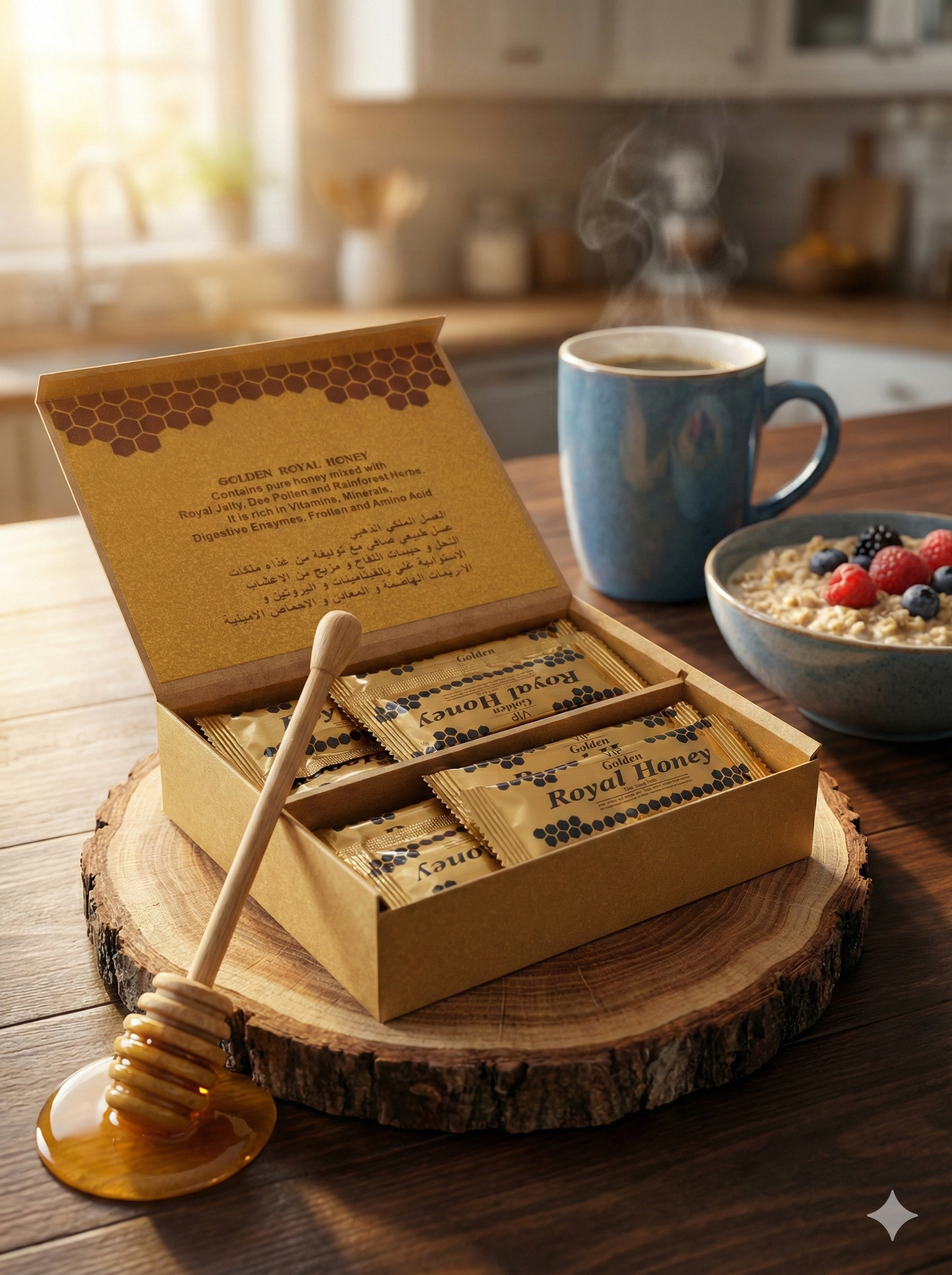 Golden Royal Honey is a premium natural honey blend designed to support energy, vitality, and overall wellness.